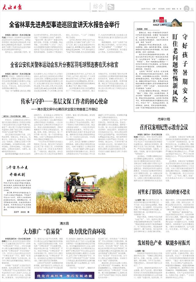 今年来,秦州区积极组织人力、机械,做到技术服务到田、配套服务到户,不断提高亩产收益,确保小麦收割工作快速完成。