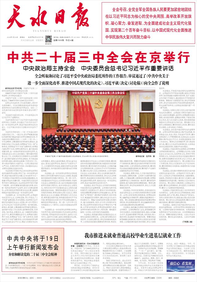 中国共产党第二十届中央委员会第三次全体会议,于2024年7月15日至18日在北京举行。
