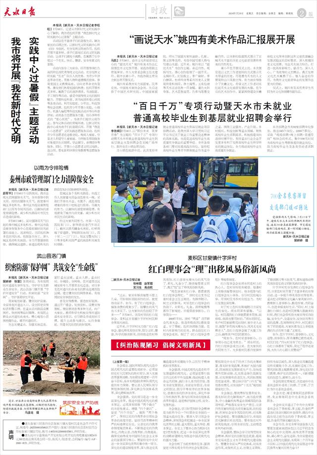 “过去,家里有婚丧嫁娶不摆上几桌,用好烟好酒搞招待的话,就觉得没面子。如今,有了红白理事会,铺张浪费的现象少了,搞攀比的风气也不多见了,让大家伙的负担轻了许多……”7月14日,谈及村里的红白理事会,麦积区甘泉镇什字坪村村民鲜全保高兴地说。