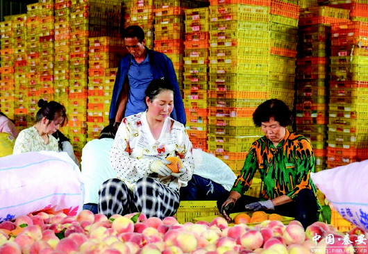 “每年能干3个月左右,一天挣120元,不仅能在家门口打工赚钱,还能照顾家里老人和小孩。”包装蜜桃的工人高小红说。