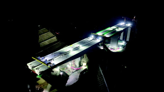 8月28日22时35分,天庄高速公路渭河特大桥主桥按预定时间开始转体。在历时90分钟后,圆满完成转体。