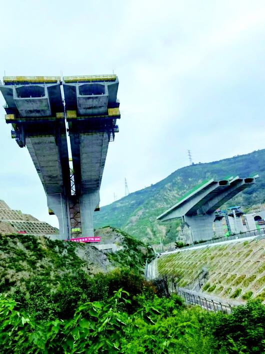 天庄高速公路渭河特大桥主桥位于天水市麦积区社棠镇刘尧村东侧,上跨陇海铁路,是天庄高速公路控制性工程,设计为双幅单墩钢构桥,全长291.7米,最大跨径140米,采用先悬臂浇筑后平面转体施工法,主桥2号、3号墩转体重量分别为2万吨和2.2万吨,其中3号主墩桥面距地面高50.9米。“该转体桥在目前国内在建的、已经转体的桥梁中,转体高度创全国第一,转体重量创甘肃第一。”中铁第一勘察设计院集团有限公司工程师邓创成说。