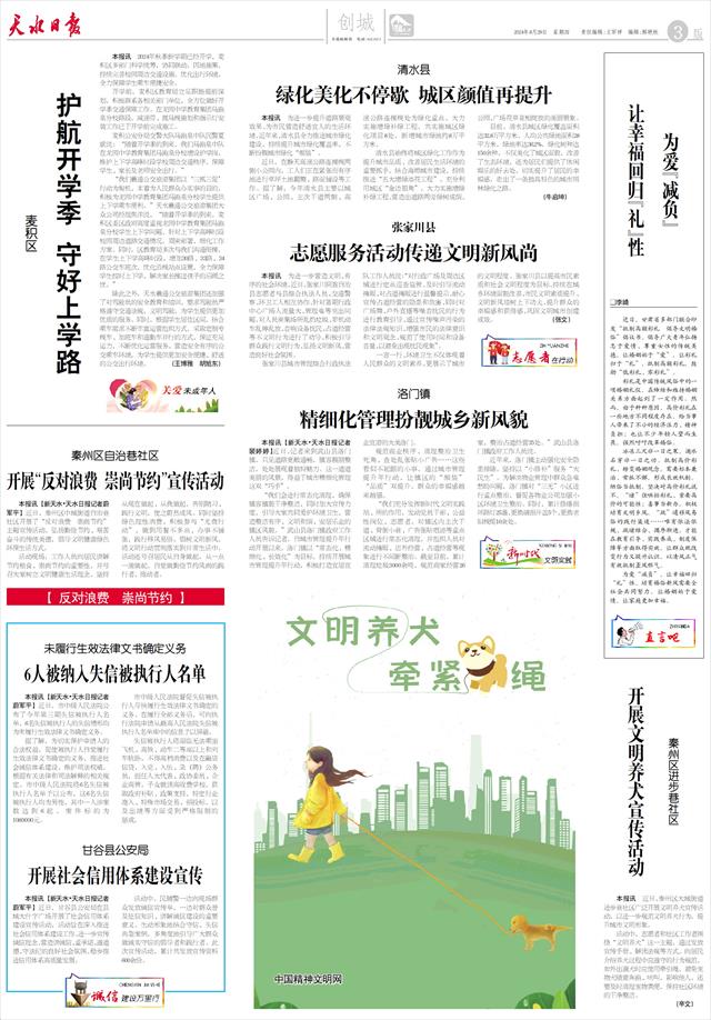 一言一行、环境卫生不仅体现着人民群众的文明素养,更展示了城市的文明程度。张家川县以提高市民素质和社会文明程度为目标,持续在城乡环境面貌改善、市民文明素质提升、文明新风培树上下功夫,提升群众的幸福感和获得感,巩固文明城市创建成效。         (张文)
