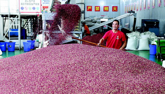 9月10日,甘谷花椒集散交易中心工人正在加工收购的花椒。甘谷花椒种植历史悠久,所产花椒色泽鲜红、粒大肉厚、麻味悠长、清香浓郁,是国内红花椒中的精品。目前,全县花椒种植面积22万亩,预计年产量1.6万吨以上,产值11.5亿元以上,花椒树真正变成了群众致富的“摇钱树”。 新天水·天水日报记者