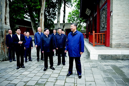 9月10日至13日,中共中央总书记、国家主席、中央军委主席习近平在甘肃考察。这是10日下午,习近平在天水市全国重点文物保护单位伏羲庙考察。 新华社记者 谢环驰 摄