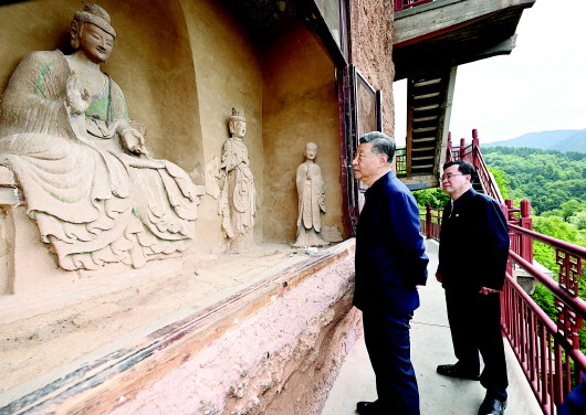 9月10日至13日,中共中央总书记、国家主席、中央军委主席习近平在甘肃考察。这是11日上午,习近平在天水市麦积山石窟考察。 新华社记者 谢环驰 摄