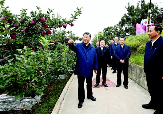 9月10日至13日,中共中央总书记、国家主席、中央军委主席习近平在甘肃考察。这是11日上午,习近平在天水市麦积区南山花牛苹果基地考察。 新华社记者 谢环驰 摄