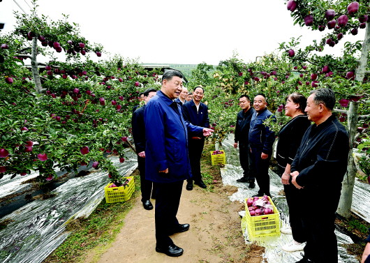 9月10日至13日,中共中央总书记、国家主席、中央军委主席习近平在甘肃考察。这是11日上午,习近平在天水市麦积区南山花牛苹果基地考察时,走进果林了解相关种植、技术和管理情况。