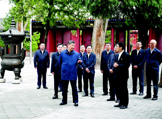 9月10日至13日,中共中央总书记、国家主席、中央军委主席习近平在甘肃考察。这是10日下午,习近平在天水市全国重点文物保护单位伏羲庙考察。