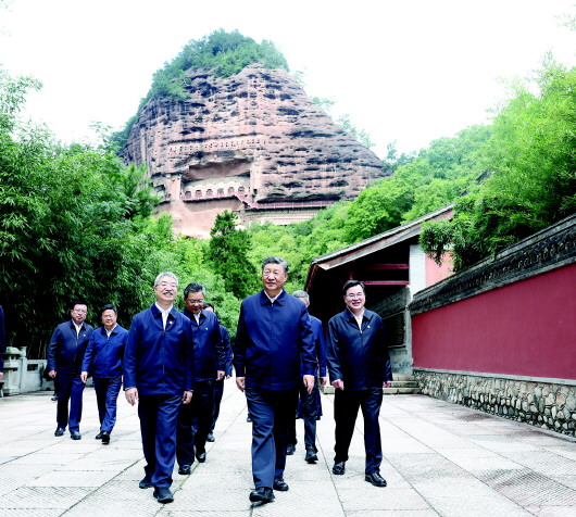 9月10日至13日,中共中央总书记、国家主席、中央军委主席习近平在甘肃考察。这是11日上午,习近平在天水市麦积山石窟考察。 新华社记者
