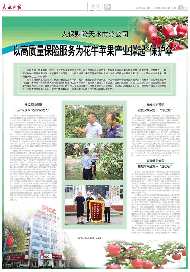 人保财险天水市分公司 以高质量保险服务为花牛苹果产业撑起“保护伞”
