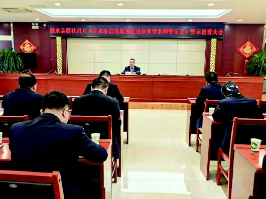 为纵深推进党纪学习教育常态化、长效化,进一步贯彻落实省农信联社关于开展《甘肃农信违规违纪违法典型案例警示录》学习的通知精神,近日,清水县信用联社召开《甘肃农信违规违纪违法典型案例警示录》警示教育大会,教育引导全县信合干部员工强化自律意识、筑牢思想防线,牢固树立“依法合规经营”的理念,真正做到受警醒、明底线、知敬畏,联社领导班子成员、本部全体员工、各中层管理人员及基层网点客户经理共计100余人参加会议。