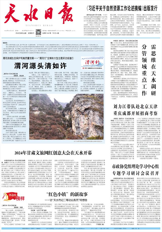 为认真贯彻落实习近平总书记视察甘肃重要讲话重要指示精神,以及在全面推动黄河流域生态保护和高质量发展座谈会上重要讲话精神,天水市融媒体中心组织10余名全媒体记者,兵分两路,分赴甘肃省定西市、天水市和陕西省宝鸡市、咸阳市、西安市、渭南市6个沿渭城市20多个县(区),深入采访报道当地着力加强渭河流域生态保护治理、促进全流域高质量发展、改善人民群众生活、保护传承渭河文化的实际举措和成功做法,为我市做好渭河流域生态保护治理和高质量发展“大文章”提供有益借鉴。天水市融媒体中心所属各媒体今天起推出系列报道,敬请关注。