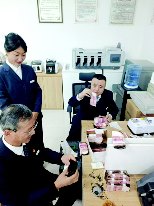 该工作人员立即引导客户到贵宾室休息,同时安抚客户并为其讲解残币兑换的相关政策,并向其了解基本情况。原来,该客户将近年来在外辛苦打工所赚取的现金包裹进大衣放置家中,不幸家中失火而将衣物中的现金也烧损,前往几家银行兑换无果,以为多年辛苦付之一炬,激动之时以至悲伤落泪。支行网点负责人、运营主管等相关人员一边安抚客户,一边小心打开包裹现金的黑色塑料袋,将残损现金放入纸盒开始整理。发现现金烧毁程度不一,票币之间粘连严重,现金清分工作人员需要手工逐张清点,并根据票面的破损程度准确估算兑换价值,还要认真鉴别残损币的真伪,清点难度大且耗时耗力。为了尽快完成清分工作,该行立即组织人员,在保证正常营业的基础上,调整人员分工,增配人手开展细致地整理工作。