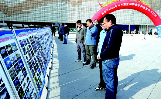 11月20日,以“关爱水生动物,共建和谐家园”为主题的天水市2024年水生野生动物保护科普宣传月活动启动仪式在秦州区天河广场举行。活动现场为天水海洋乐园颁发了“天水市水生野生动物临时收容救护中心”牌匾;志愿者代表宣读了《水生野生动物保护宣言》;工作人员通过摆放宣传展板、发放宣传资料、现场讲解等方式,为市民普及了水生野生动物保护知识,提高群众的水生野生动物保护意识。此次活动截至12月19日,将以“进渔区、进校区、进保护区”形式持续开展科普宣传,让更多人参与到水生野生动物保护中来,在全社会营造关爱水生野生动物、保护水生野生动物的浓厚氛围。 新天水·天水日报记者 曹润彬 摄