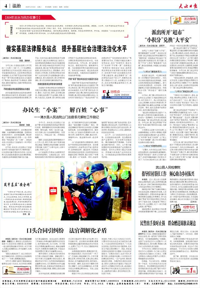 如何让“小积分”兑换“大平安”,继而赋能基层“大治理”?清水县公安局黄门派出所通过坚持和发展新时代“枫桥经验”,积极推动“积分超市”在基层治理中的深度应用,勇于创新,实现了平安“小积分”赋能基层“大治理”,群众的获得感、幸福感、安全感显著提升。