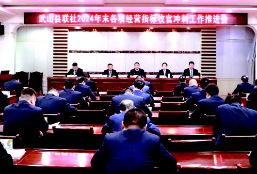 本报讯 为全面梳理全年各项业务指标完成情况,寻找业务发展堵点难点问题,科学部署最后阶段任务冲刺,2024年12月23日,武山县联社召开2024年末各项经营指标收官冲刺工作推进会。