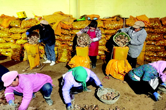 近期,在位于张家川回族自治县张家川镇刘家村的马铃薯种子贮藏库里,20多名村民正在县农业农村局技术人员的指导下有序分拣马铃薯种子,为一年一度的春耕生产做准备,确保种薯供应品质优良,客户、群众放心。2024年,该县马铃薯种植面积达到13.5万亩以上,总产量达到30万吨以上;2025年,全县共存储马铃薯原原种250万粒,种薯5000吨,品种有青薯9号,陇薯7号、10号、15号,早熟有冀张薯12号、V7、希森6号等。 窦苗苗 白桂梅 摄