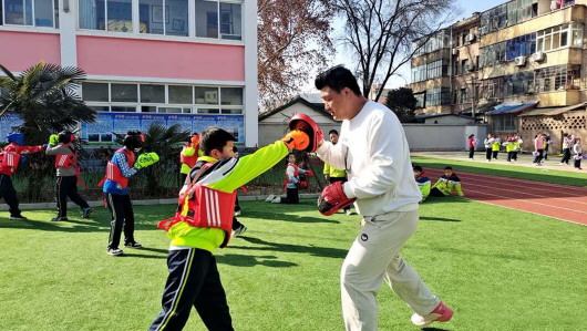 桥南小学教导主任赵艳平说:“每天早读结束后,我们安排了全校学生的跑操。两节课后,加入了大课间活动,二课体育活动我们也开设了篮球、足球、排球、跆拳道等体育项目,为学生的身体健康成长奠定了良好基础。”