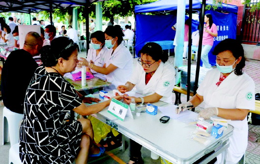 日前,秦州区七里墩街道长控社区联合天水四零七医院开展健康知识宣传和义诊活动,免费为居民测量血压、血糖,检查口腔,做B超、心电图等,讲解常见病、多发病以及自我保健的相关知识,提升居民健康意识。 马小兰 摄