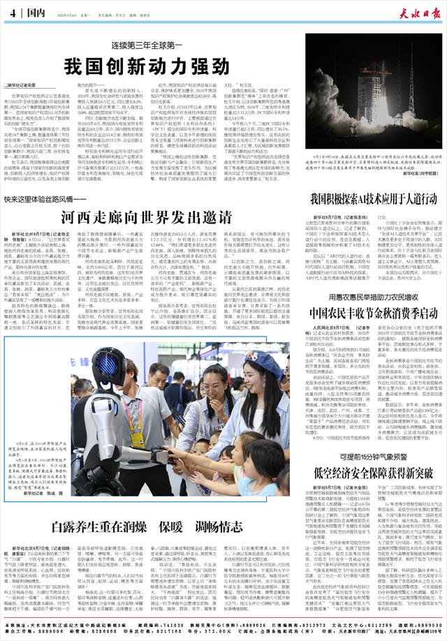 连续第三年全球第一 我国创新动力强劲    新华社记者宋晨
