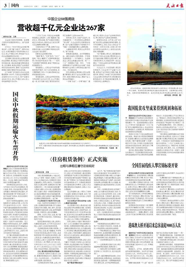 9月15日,“2025中国企业500强”榜单出炉:入围门槛“23连升”,增至479.6亿元;实现归属母公司的净利润4.71万亿元,较上年增长4.39%;营收超千亿元的企业数量增加至267家……