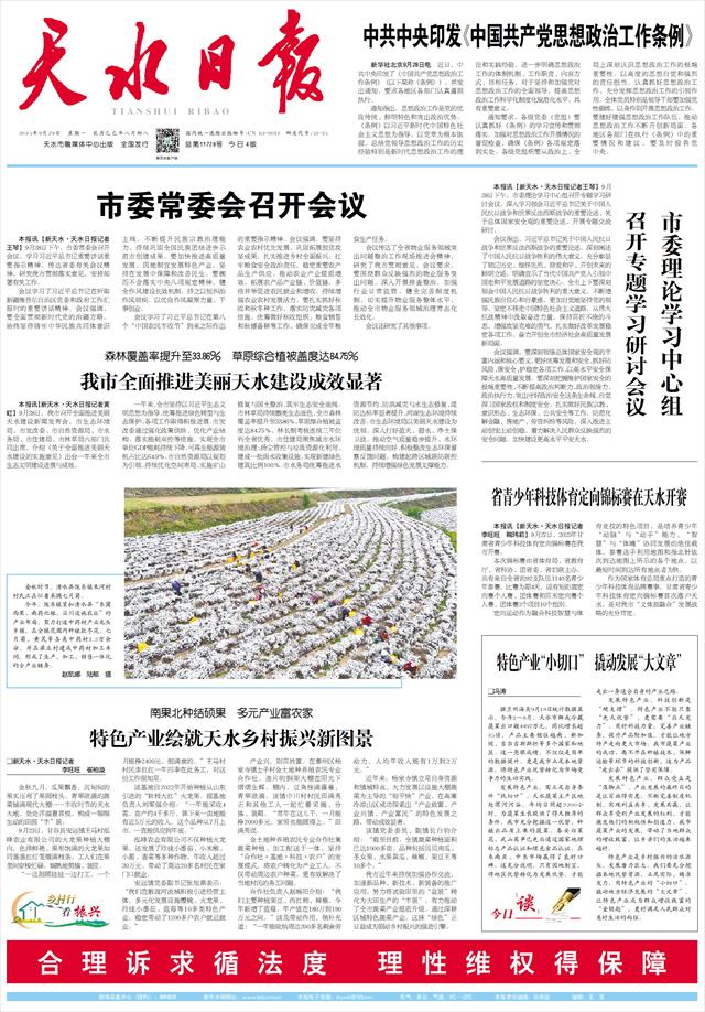 本报讯【新天水·天水日报记者王琴】9月28日下午,市委常委会召开会议,学习习近平总书记重要讲话重要指示精神,传达省委有关会议精神,研究我市贯彻落实意见,安排部署有关工作。