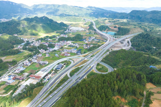 这是9月29日在湘西州龙山县拍摄的桑龙高速茅坪枢纽(无人机照片)。