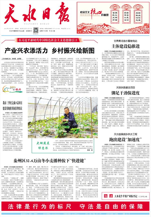 “要加强品种保护和培育”。习近平总书记的嘱托言犹在耳。天水儿女牢记于心,以实干作答——在种植方式上求“优”、在营销模式上求“新”、在品种培育上求“强”,“三篇文章”齐发力,做强产业根基。