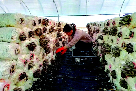 走进甘谷县安远镇平菇种植基地的双层大棚,只见一排排菌棒整齐排列,朵朵平菇破“棒”而出,簇拥绽放,饱满肥厚,长势喜人,仿佛在宣告着又一个丰收季的到来。