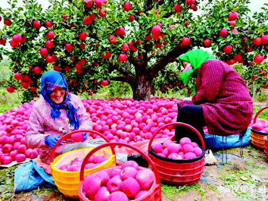 金秋时节,张家川回族自治县梁山镇的苹果园里,果农们穿梭林间忙着采摘、分拣、装箱,客商的收购车辆往来穿梭,一派丰收忙碌的喜人景象。一片片果园,不仅鼓起了果农的“钱袋子”,也成了周边村民家门口的临时“就业工厂”。