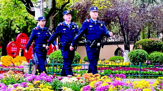▲天水市公安局秦州分局民警在重点区域和人流密集处开展日常巡逻
