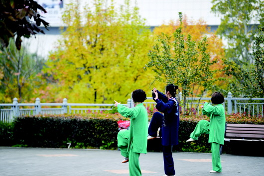 漫步公园,火红的枫叶染红了公园一角,草尖披上了金色的外衣,交织成最美丽的景象,微风一吹宛若一幅流动的秋日画卷。