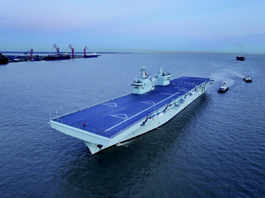 11月16日下午5时许,海军四川舰完成为期3天的首次航行试验任务,顺利返回船厂码头。