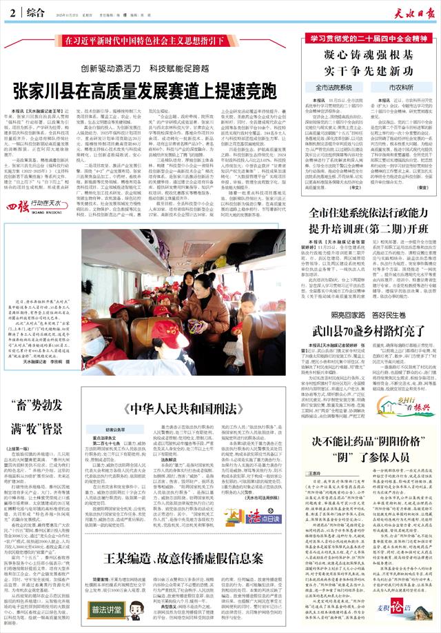 创新驱动添活力 科技赋能促跨越 张家川县在高质量发展赛道上提速竞跑   本报讯【天水融媒记者王琴】近年来,张家川回族自治县深入贯彻“强科技”行动部署,以政策为引领、项目为抓手、产学研为纽带,构建多层次科技创新体系。全县科技项目量质齐升,企业培育梯队持续壮大,一幅以科技创新驱动高质量发展的清晰图景,正在阿阳大地徐徐展开。