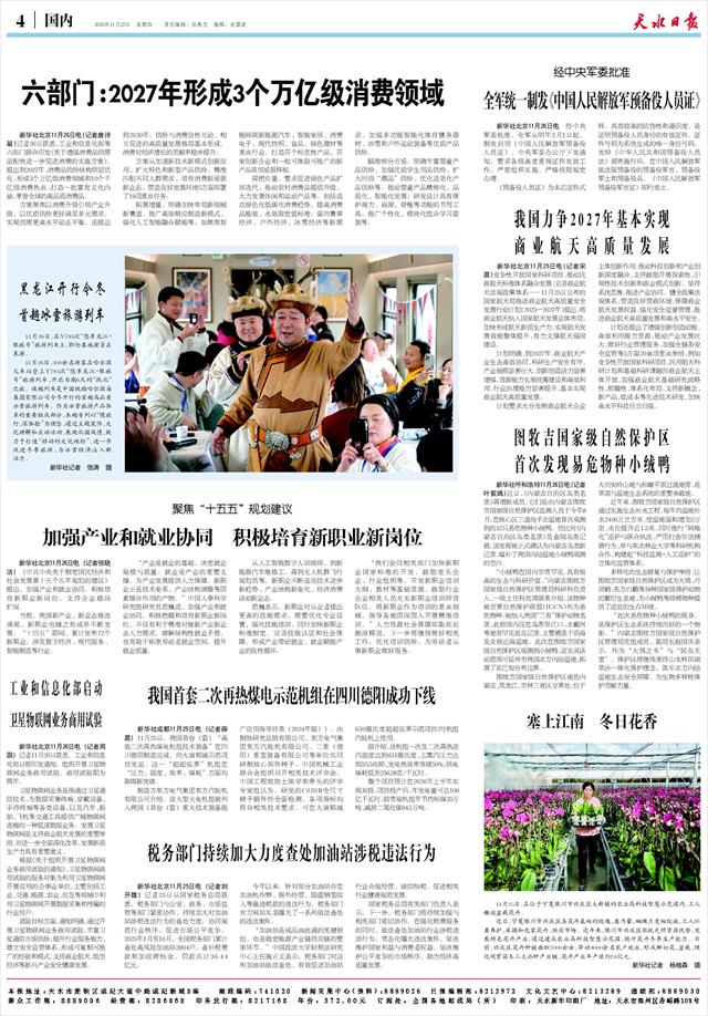 聚焦“十五五”规划建议 加强产业和就业协同 积极培育新职业新岗位   新华社北京11月26日电(记者张晓洁)《中共中央关于制定国民经济和社会发展第十五个五年规划的建议》提出,加强产业和就业协同,积极培育新职业新岗位,支持企业稳岗扩岗。