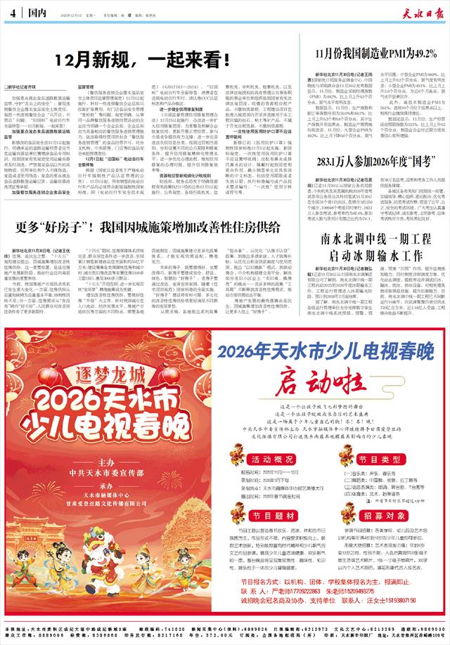 收官“十四五”,天水住房建设的答卷,已转化为千家万户门前崭新的道路、窗外新增的绿意,以及居民们“原地搬新家”的踏实幸福感。展望新征程,天水市将继续坚守“住房为民”的初心,把更多的安居梦、优居梦描绘进城市发展的蓝图,让幸福的图景在每一个焕然一新的家园里,变得可感、可触、可及。