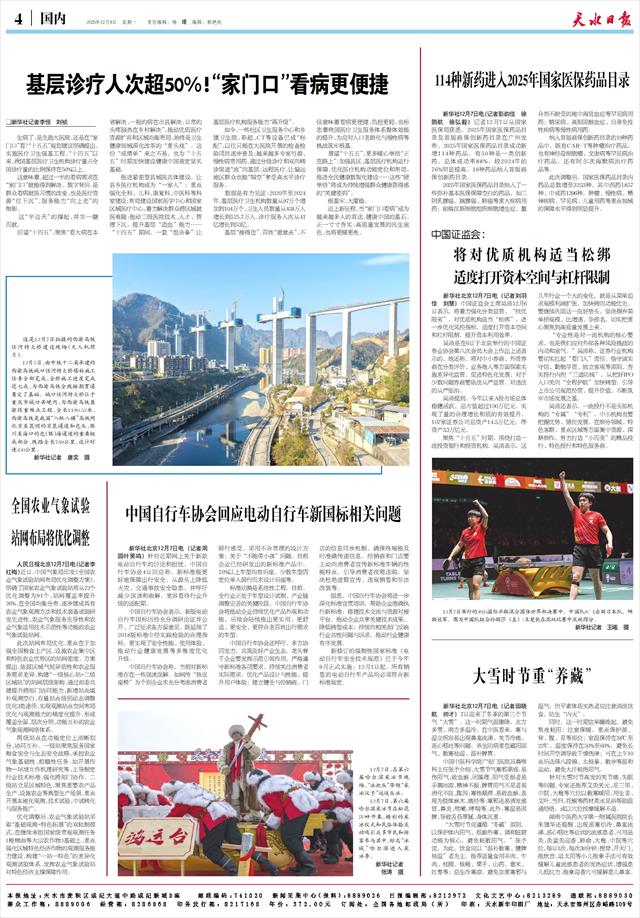 114种新药进入2025年国家医保药品目录   新华社12月7日电(记者彭韵佳 徐鹏航 徐弘毅)记者12月7日从国家医保局获悉,2025年国家医保药品目录及首版商保创新药目录在广州发布。2025年国家医保药品目录成功新增114种药品,有50种是一类创新药,总体成功率88%,较2024年的76%明显提高。19种药品纳入首版商保创新药目录。