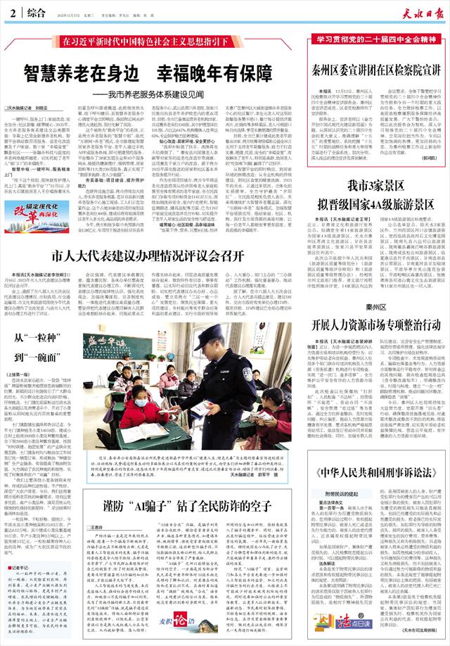 从智慧平台的即时响应,到居家环境的细微改造;从专业机构的持续建设,到社区食堂的暖意流淌,2025年的天水,正通过多层次、立体化的实招硬举,全力守护最美“夕阳红”。市民政局相关负责人表示,未来将继续扩大智慧养老覆盖面,深化“互联网+养老”服务模式,加强智慧平台场景应用,推动家庭、社区、机构、医疗及市场资源的高效对接,让每一位老年人都能安享更有温度、更具质感的幸福晚年。