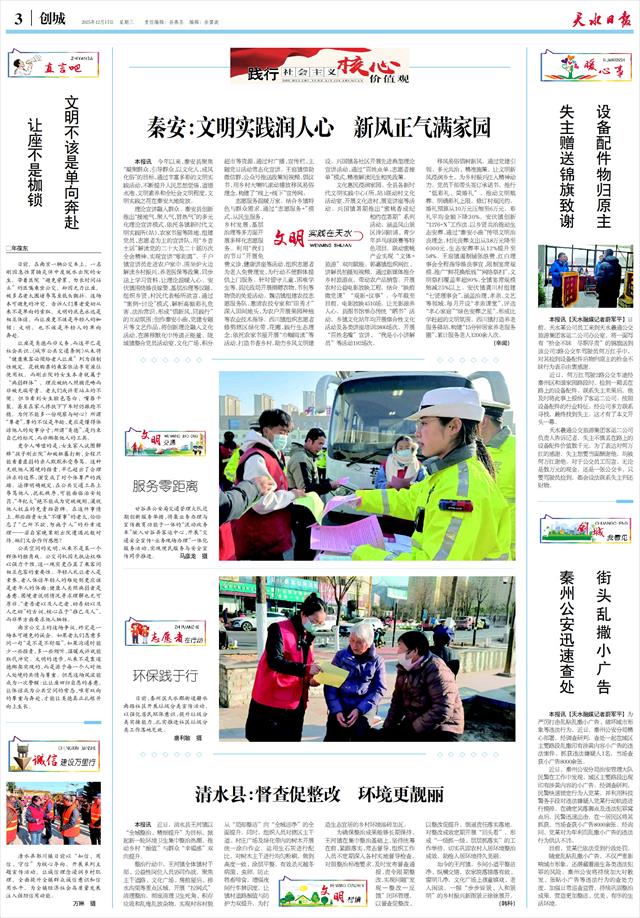 随意乱贴乱撒小广告,不仅严重影响城市形象,还潜藏着滋生各类违法犯罪的风险。秦州公安将持续加大对散发、张贴小广告等违法行为的查处力度,加强日常巡查监管,持续巩固整治成果,营造更加整洁、优美、有序的生活环境。