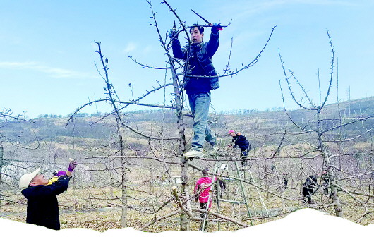 日前,在位于秦州区皂郊镇的林联苹果种植农民专业合作社的果园里,果农们手持剪刀、锯子穿梭在果树间。随着剪刀开合,原本杂乱的树木枝条变得整齐有序。该合作社是以苹果种植,家禽养殖,农产品加工、贮存、销售,新品种引进等为一体的新型农村经济合作组织,近年来陆续建成标准化苹果基地3016亩、苹果脱毒苗木繁育基地1200亩。目前,果园已完成果树涂白、施肥等前期管护工作,冬剪作业也接近尾声。