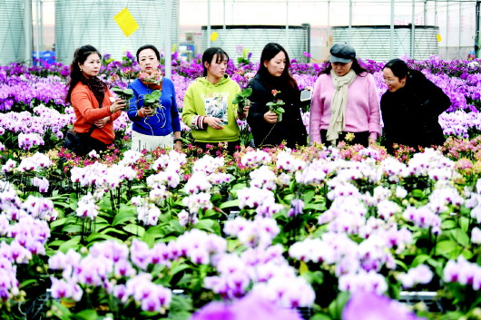 1月2日,市民在秦州区兰花产业园选购蝴蝶兰、石斛兰等花卉。