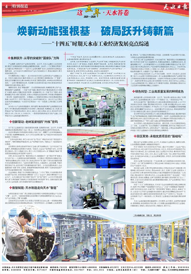 “十四五”的五年,是天水工业战线勠力同心、攻坚克难的五年,也是这座老工业基地披荆斩棘、焕发新生的五年。