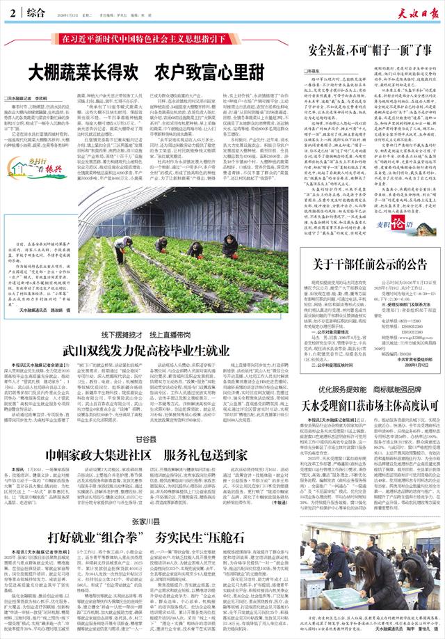 张家川县 打好就业“组合拳” 夯实民生“压舱石   本报讯【天水融媒记者李欣桐】2025年,张家川回族自治县聚焦县域发展需求与重点群体就业关切,精准施策,在创业担保贷款、零就业家庭帮扶、岗位技能提升培训、就业见习培育等重点领域持续发力,成效显著,为促进高质量充分就业筑牢了坚实基础。