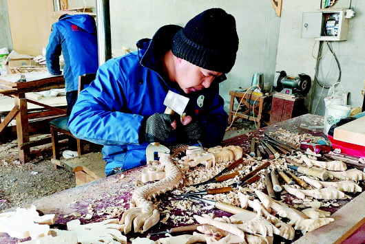 1月18日,甘谷鑫泰木业的非遗手工工坊里,匠人们手持刻刀,将圆雕、浮雕、透雕等精湛技法融入木纹,指尖流转间,普通木材逐渐化作精美的纹样。