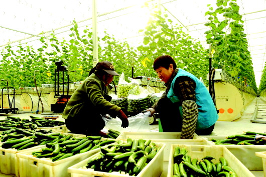 1月23日,工人正在武山县现代农业产业园分拣小乳瓜。