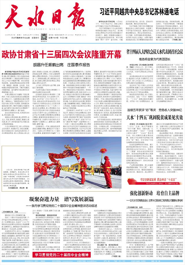 本报兰州电【天水融媒记者李国元 马放】1月26日上午,省十四届人大四次会议天水代表团召开会议。省人大代表、市委书记杨金泉主持会议并讲话。