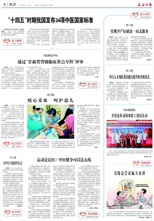本报讯 “宝宝不怕,阿姨们都在陪着你呀!”日前,在天水市第三人民医院的采血室门口,护士轻声安抚着怀里扭动的两岁患儿朵朵(化名)。旁边两位护士各司其职,一人手持玩具吸引孩子注意力,一人轻轻固定患儿手臂,采血护士则凝神观察血管走向,做好穿刺准备。