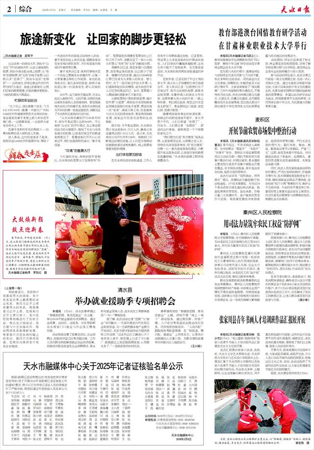 据介绍,今年春运期间,天水南站预计发送旅客64.77万人次,最高日发送量将达到2.55万人次。连日来,天水南站日均开行列车136列。铁路部门不断推出的便民措施,让人们在手指滑动间就能快速完成相关操作,线上购票变得愈发轻松便捷。