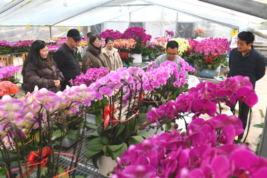2月9日,市民在天水国家农业科技园区花卉销售棚内选购蝴蝶兰。随着春节临近,我市的花卉市场年宵花集中上市,吸引市民前来赏花、购花,节日氛围逐渐升温。 天水融媒记者 周文涛 摄